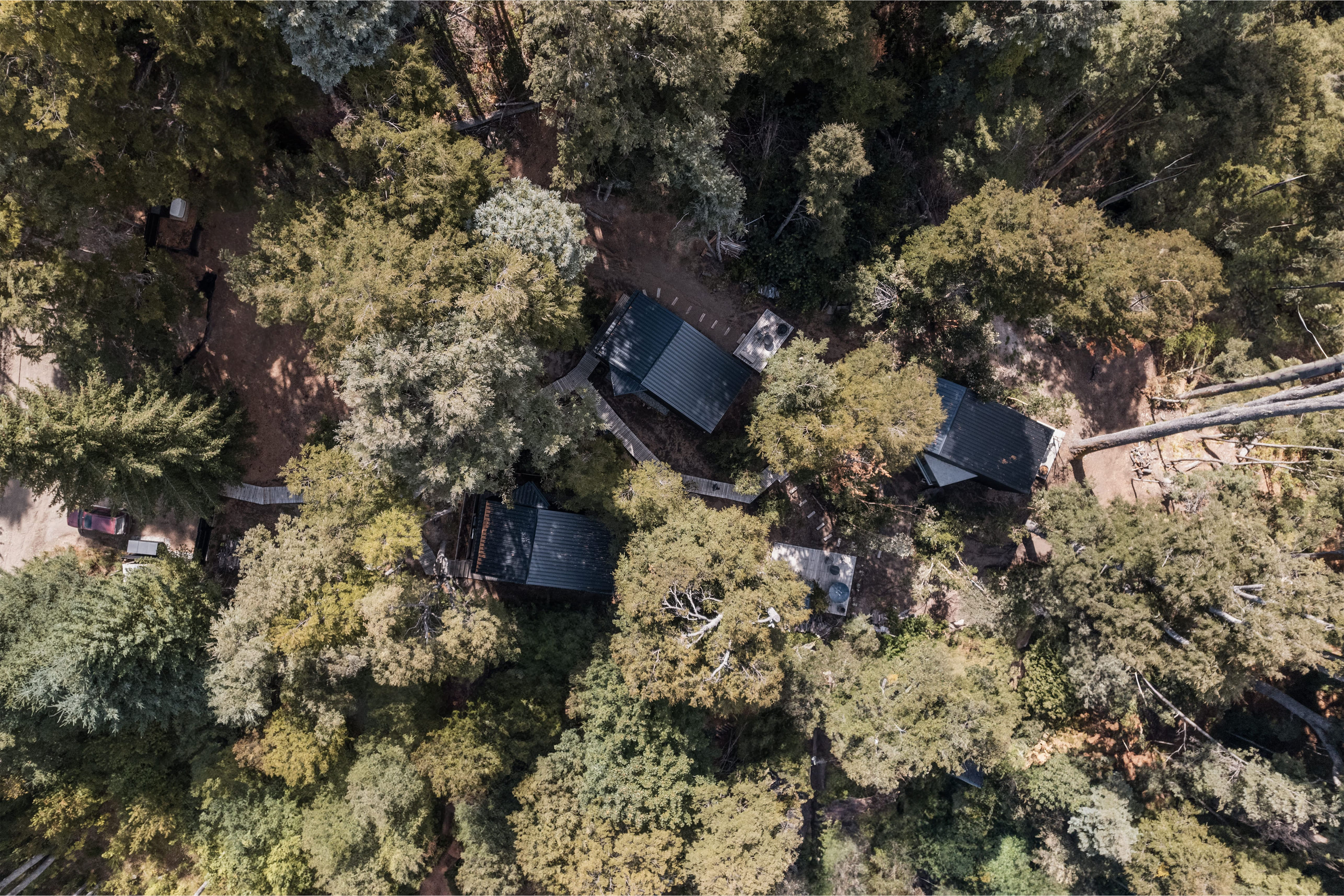 The project involved the creation of a boutique-scale tourist complex (250 m²) within a native forest of Coihues and Arrayanes, on steep terrain with stunning views and direct access to the shores of Lake Correntoso—an incredibly peaceful and natural setting. The proposal consisted of modular “landscape cabins” for two to three guests, conceived as just another element of the forest. Each cabin blends into its surroundings with a sense of controlled randomness—sharing a common architectural language, yet featuring subtle variations that give each one a unique identity. The cabins were carefully placed in natural clearings where no trees needed to be cut down, staying true to their core objective: to create an architecture that coexists harmoniously with the forest. Despite their compact footprint, the cabins offer a captivating spatial experience—dissolving the boundaries between the interior and the surrounding forest. Each unit is designed as a single open space, split across half-levels and punctuated by large, strategically positioned windows. These openings extend the sense of space outward and allow the dense Myrtle canopy to provide both privacy and immersion in nature. This approach also fosters intimacy between each volume and the communal areas of the complex. The bathrooms are spacious and comfortable. The largest cabin features a freestanding tub with panoramic views—inviting guests to enjoy a hot bath while watching the snowfall through the window. The architects anticipated the project's logistical challenges: a narrow, sloped site densely populated with trees. To address this, they opted for dry construction atop reinforced concrete foundations, requiring precise and efficient planning. Externally, the cabins feature a rugged, rocky morphology clad in eucalyptus wood, treated with the ancient Japanese technique Shou Sugi Ban. This method—charring the wood’s surface—creates a unique texture and improves water resistance, fire retardancy, sustainability, and durability.