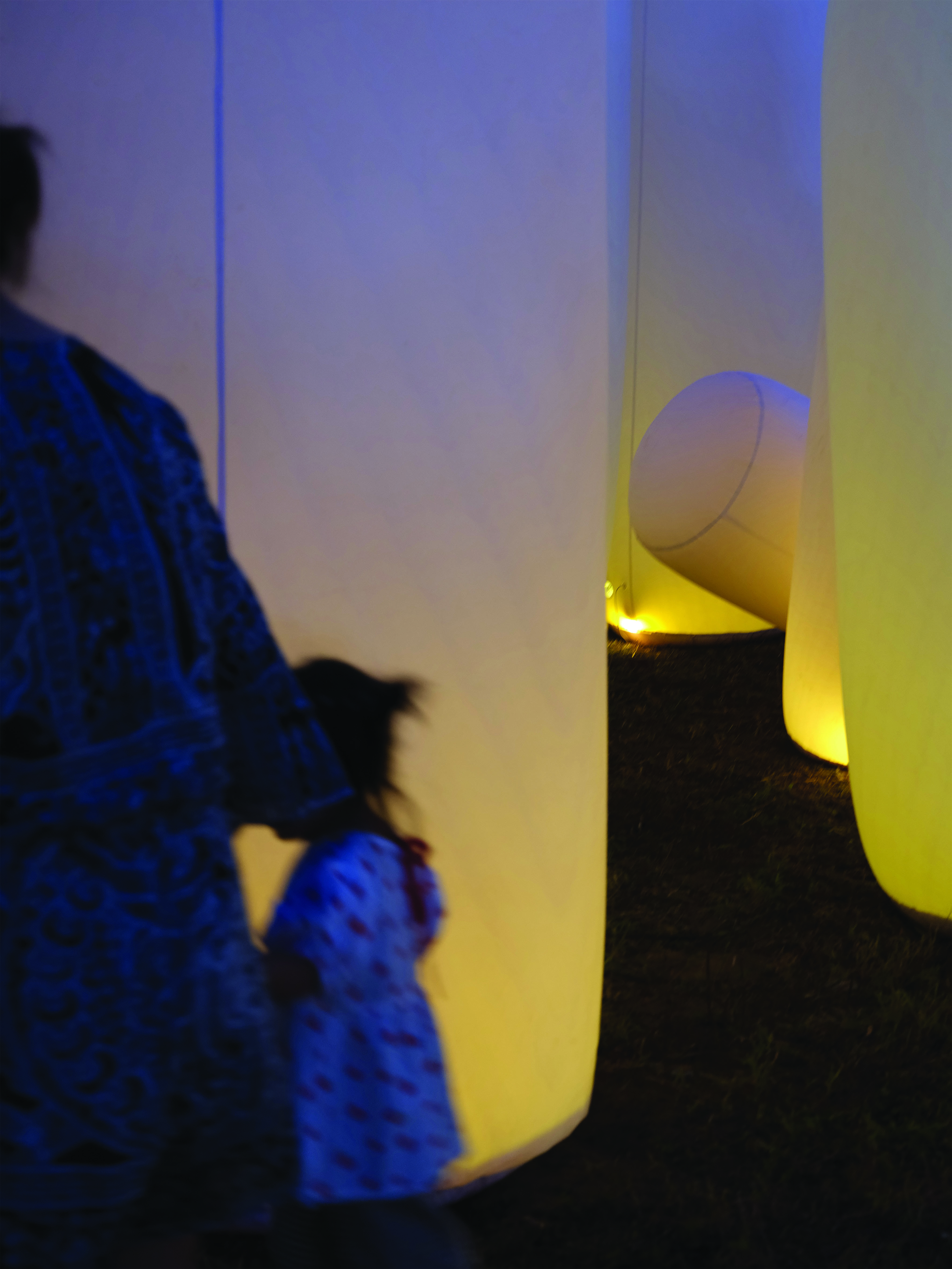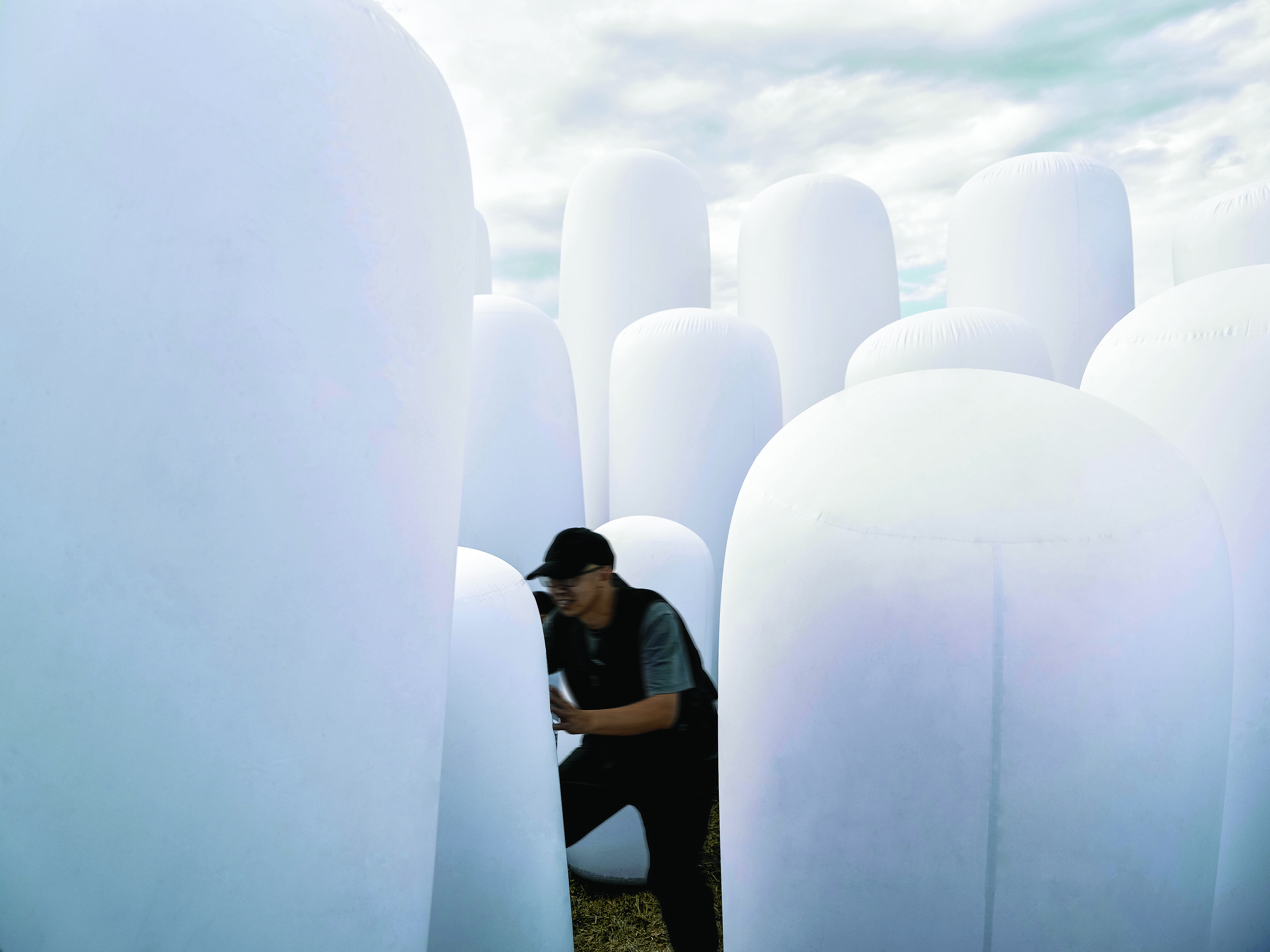 At the tail end of the summer of 2023, WAG Architects was invited to participate in the Longjiang Wetland Art Festival and designed a series of art installations that align with the wetland theme for the festival. Four art installations were set up in the picturesque Hulan Wetland. We aimed to use familiar elements and objects as a starting point to attempt to redefine the interaction between humans and nature in creative ways. "Dancing Stone Forest" is one of these installations. We hope to explore with visitors who love nature how humans and nature can coexist harmoniously, allowing the only home on which we depend for living to achieve sustainable development. The original inspiration for this project comes from one of the most common elements in nature—stones. Stones are also one of the origins of human architectural development. Thousands of years later, we can still see many magnificent stone-based relics on the earth. These are the ingenious treasures of prehistoric humans transforming the natural environment. One of the most iconic examples is the famous prehistoric monument, Stonehenge, on the Salisbury Plain in England. "The Dancing Stone Forest" is inspired by Stonehenge, symbolizing this common natural element of stones. Huge white inflatable pillars present the form of stones and encourage people to interact with the "stones" in a softer manner. In the vast Hulan Wetland, we seem to see the passage of time, with the great prehistoric relics welcoming their new life in a way more suited to this era. "The Dancing Stone Forest" covers an area of 63 square meters. Thirty giant white pillars are arranged in a double spiral, forming a stone circle that invites people to enter and explore.