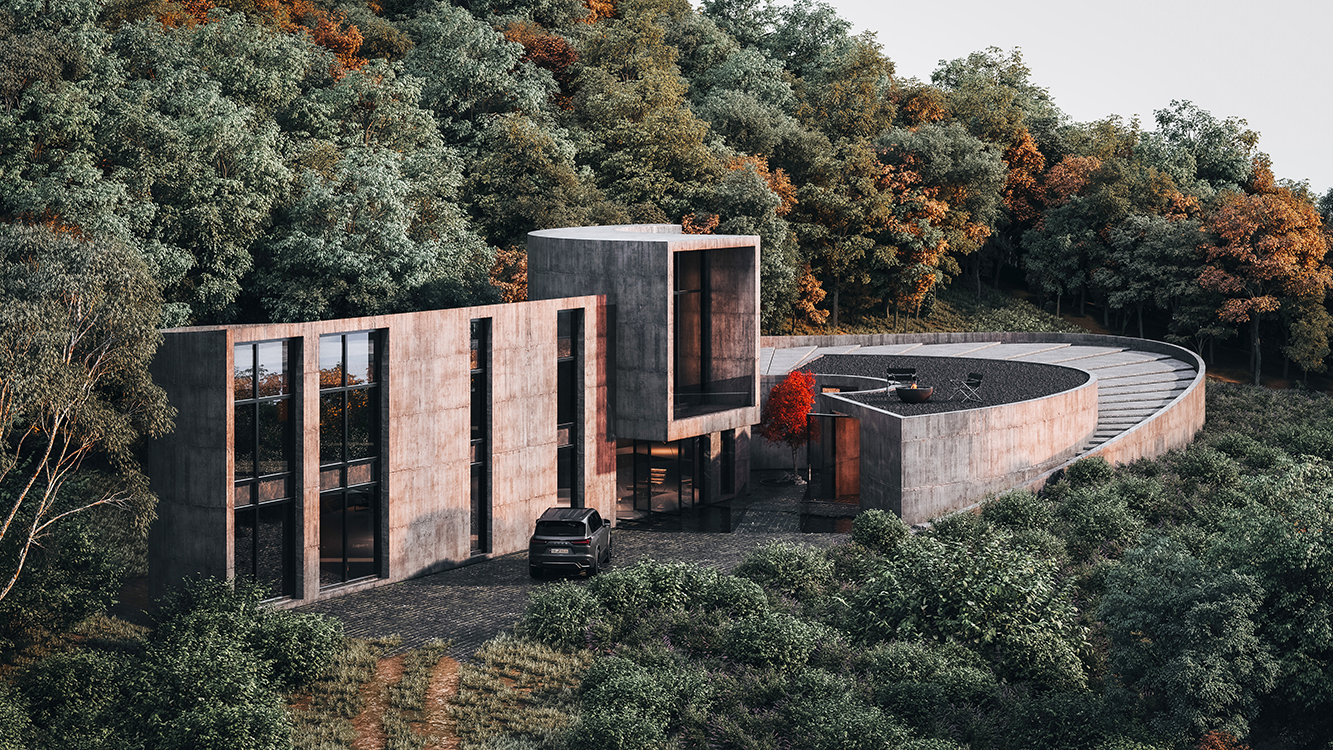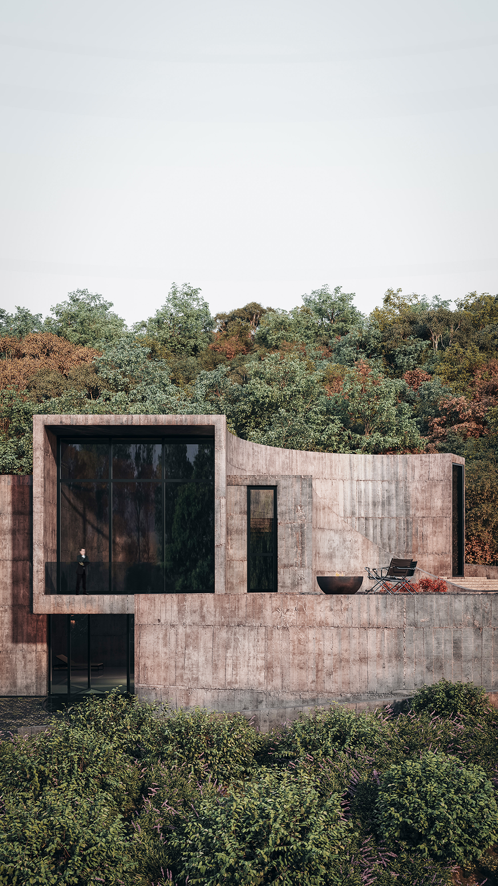 Savan House is not merely a villa but a spiritual and spatial journey in the temperate forests of northern Iran where architecture becomes a dialogue between human presence, nature and time. The name comes from the Gilaki word Savan meaning a semi open threshold between inside and outside, refuge and openness. Inspired by the spiral geometry of a snail shell, the design symbolizes continuity and ascension. The journey begins at the forest edge, moves into the contemplative calm of a courtyard and culminates on a rooftop with boundless views. Gradual shifts in scale, light and elevation guide the user from openness toward serenity. Three main challenges shaped the project: ensuring privacy while remaining open to views, achieving climatic responsiveness in a humid environment and integrating a contemporary form into the natural site. The result is a design that collaborates with nature rather than imposing upon it. Traditional Iranian layering between inner and outer realms is reinterpreted as spatial strategy. Public functions extend to the edges while private spaces cluster around the courtyard, the social and climatic heart of the house. This core provides pause, interaction and comfort through cross ventilation and daylight control. Exposed concrete defines the primary structure, chosen for durability in humidity and for its honest expression of material. Minimalist massing reduces unnecessary elements while retaining geometric dynamism. Semi open façades channel breezes and frame views of forest and sky, embedding nature within everyday life. Movement unfolds as narrative, from forest openness to courtyard stillness and upward to the horizon. By combining organic form, climatic intelligence and cultural depth, Savan House reinterprets Iranian heritage while offering a multidimensional dwelling experience.