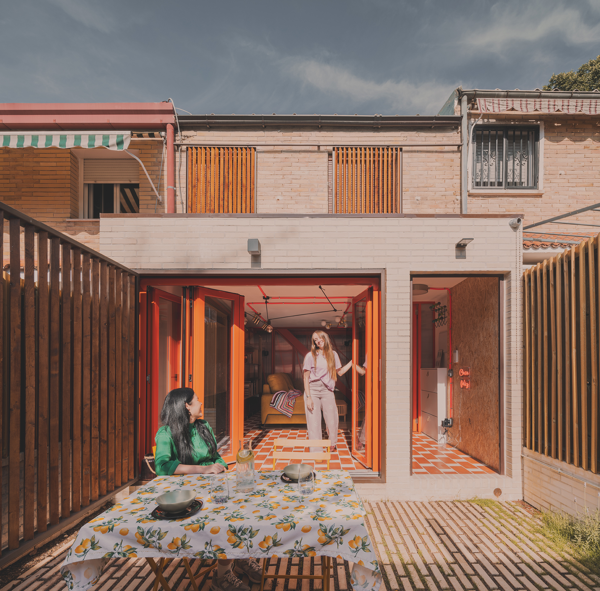 Located in Fuencarral C, one of Madrid’s Satellite Settlements built between 1956 and 1966, Happy Home is a rehabilitation project that seeks to restore the essence of the original house while adapting it to contemporary life. Designed by José Luis Romany, the dwelling had undergone multiple transformations that concealed its distinctive character: the courtyard had been enclosed, the brick façade tiled over, and the iconic porch lost. The renovation aims to recover the architectural integrity of the building and prepare it for a new stage, accompanying a young family of four in their daily routines. Six key strategies guide the intervention: removing later additions to recover the original volumetry; restoring the exposed brick façade and its lattices; incorporating two new porticoes to organise circulation and expand shared spaces; opening the western façade to connect interior and exterior areas; activating the attic under the gable roof; and improving the house’s environmental performance through aerothermal systems and the use of natural materials. The palette combines ceramics, wood, and metal with bright touches of orange and green, creating a warm, vibrant atmosphere that reflects the vitality of its inhabitants. Spaces are designed to evolve with time: the large children’s room can later be divided for privacy; the kitchen grows from a space for high chairs into a shared office-kitchen; and the living room opens completely in summer to merge with the garden. Happy Home reclaims light, air, and domestic life as essential elements of architecture. It invites coexistence between humans, animals, and materials, allowing the house to breathe again while preserving its memory. The renovation transforms what was once an altered structure into a flexible, luminous home—ready to embrace the future without forgetting its past.