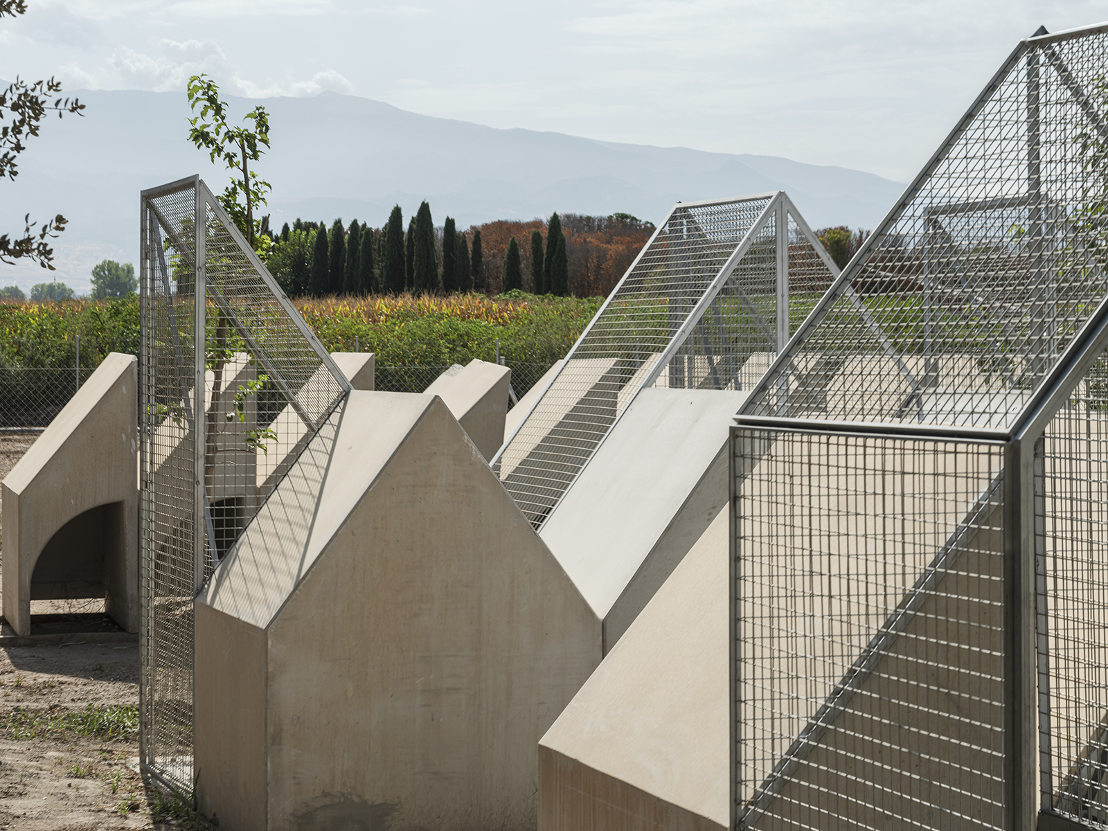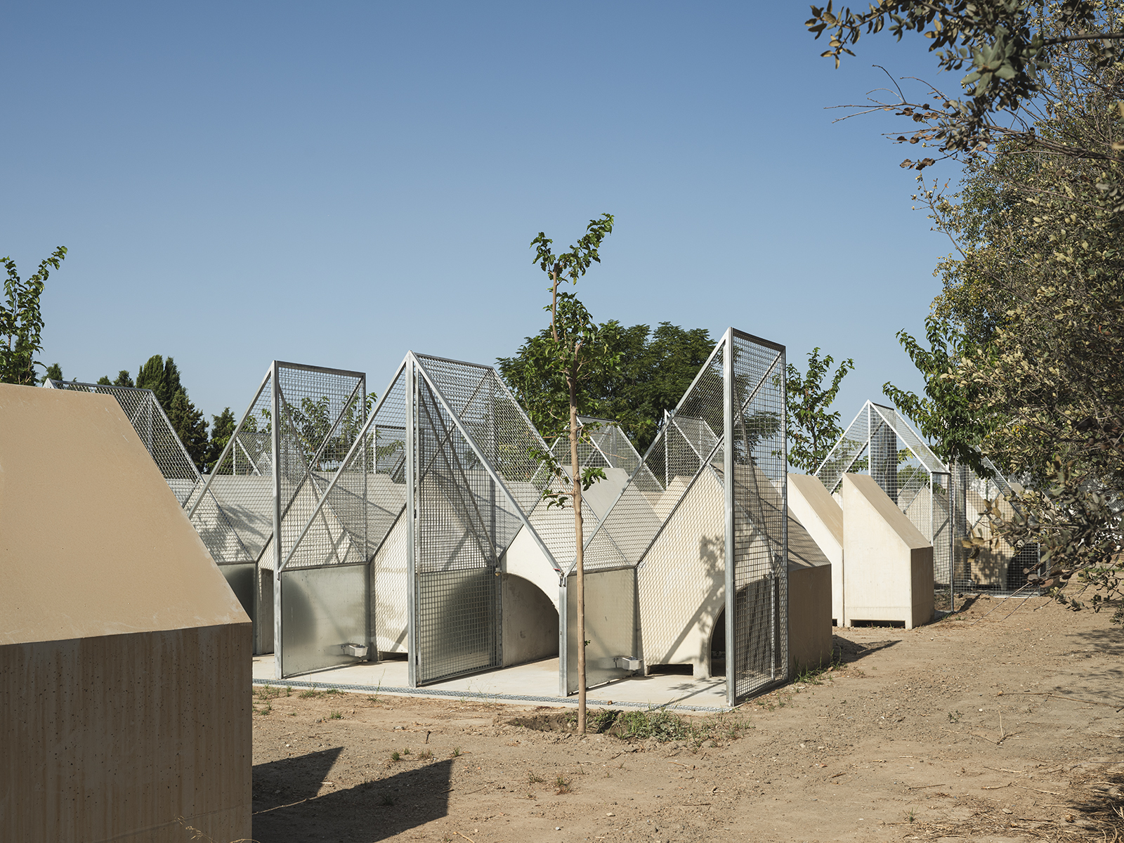 City vs. Prison Many animal shelters prioritize cost efficiency, resulting in closed, oppressive environments with dark corridors and small cages that restrict animals’ freedom. Our proposal takes the opposite approach: instead of a prison, the shelter becomes a city, a place of life and interaction. The design is based on open, interconnected spaces that function like plazas, allowing animals to move, explore, and perceive their surroundings. Visitors can observe them directly, encouraging empathy and connection. Although these spaces are visually open, access to them is controlled and managed by staff to ensure safety. Dogs rotate through different areas depending on their needs and conditions, allowing them to enjoy the outdoors and enriched environments whenever possible. This system supports not only physical well-being but also socialization and emotional vitality. Home vs. Cage To replace traditional metal or brick enclosures that confine animals, we introduce prefabricated modular dog homes, inspired by the familiar “doghouse” as a symbol of shelter and belonging. These repeatable modules allow efficient mass production, easy reconfiguration, and adaptation over time. The shelter becomes a flexible organism that can grow and reorganize based on demand and population changes. The construction system uses reinforced precast concrete, made from a single mold with small variations to create different piece types. This enables economical expansion and straightforward rearrangement of kennels and enclosures. Combined with outdoor yards, the modules form a network of small “homes” that together create a dog city—a community rather than confinement. Modularity and Flexibility Light galvanized steel frames with welded wire mesh are used to form partitions, access points, and outdoor yards. With only four frame types, numerous spatial configurations are possible. Each dog can have an individual shelter plus an exterior area, ensuring mobility, stimulation, and a sense of place.