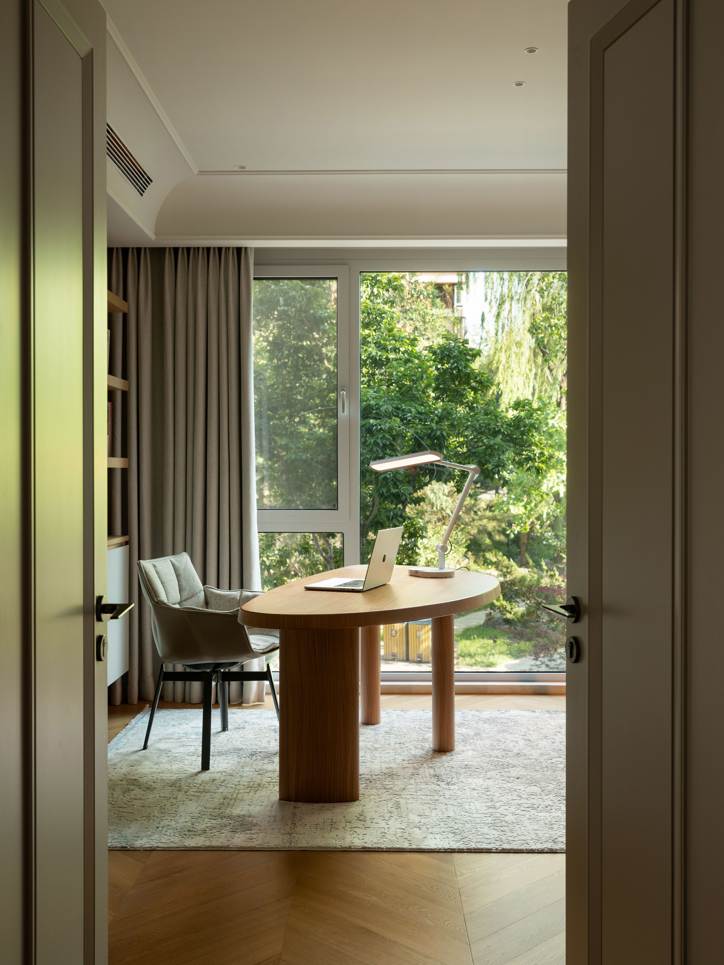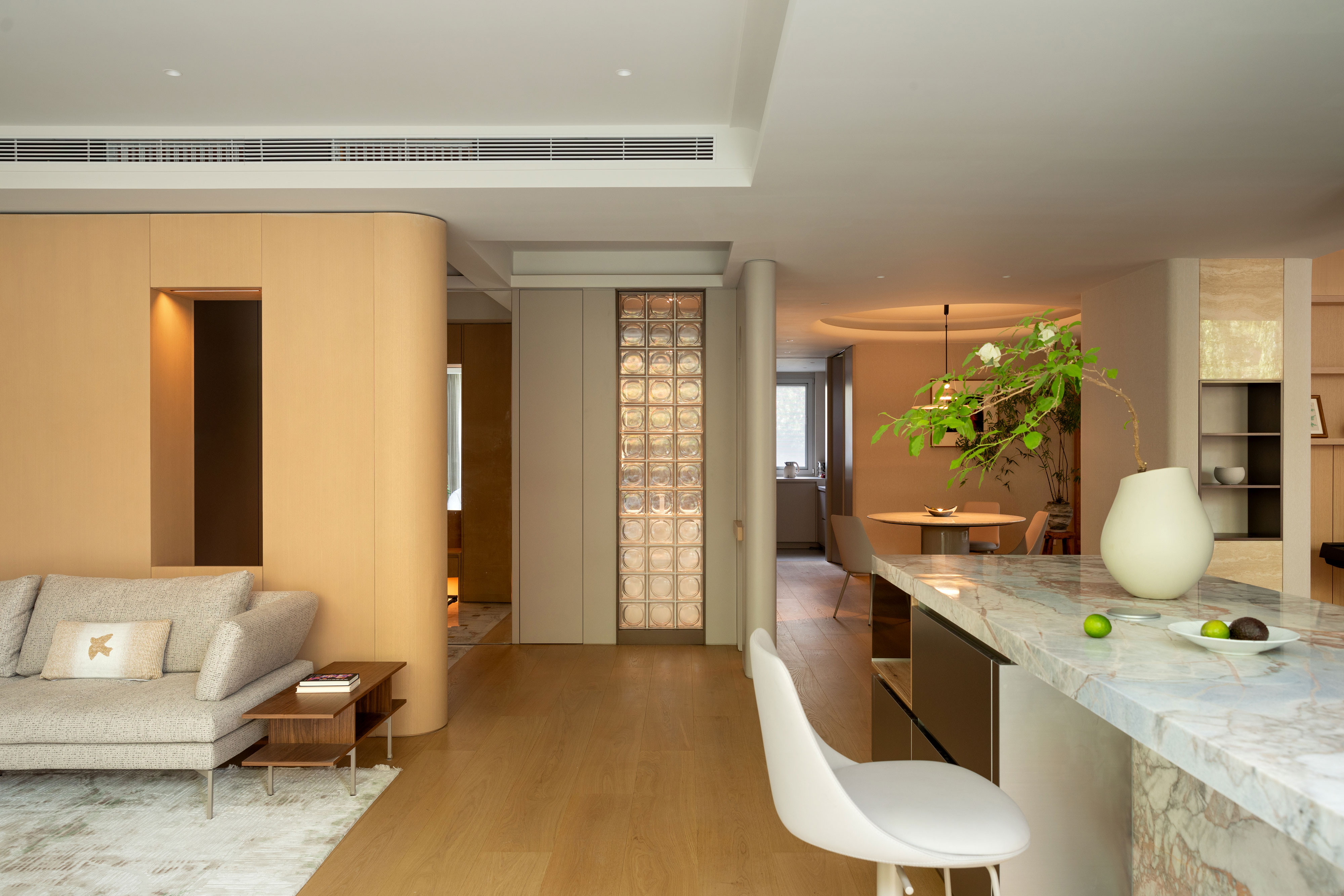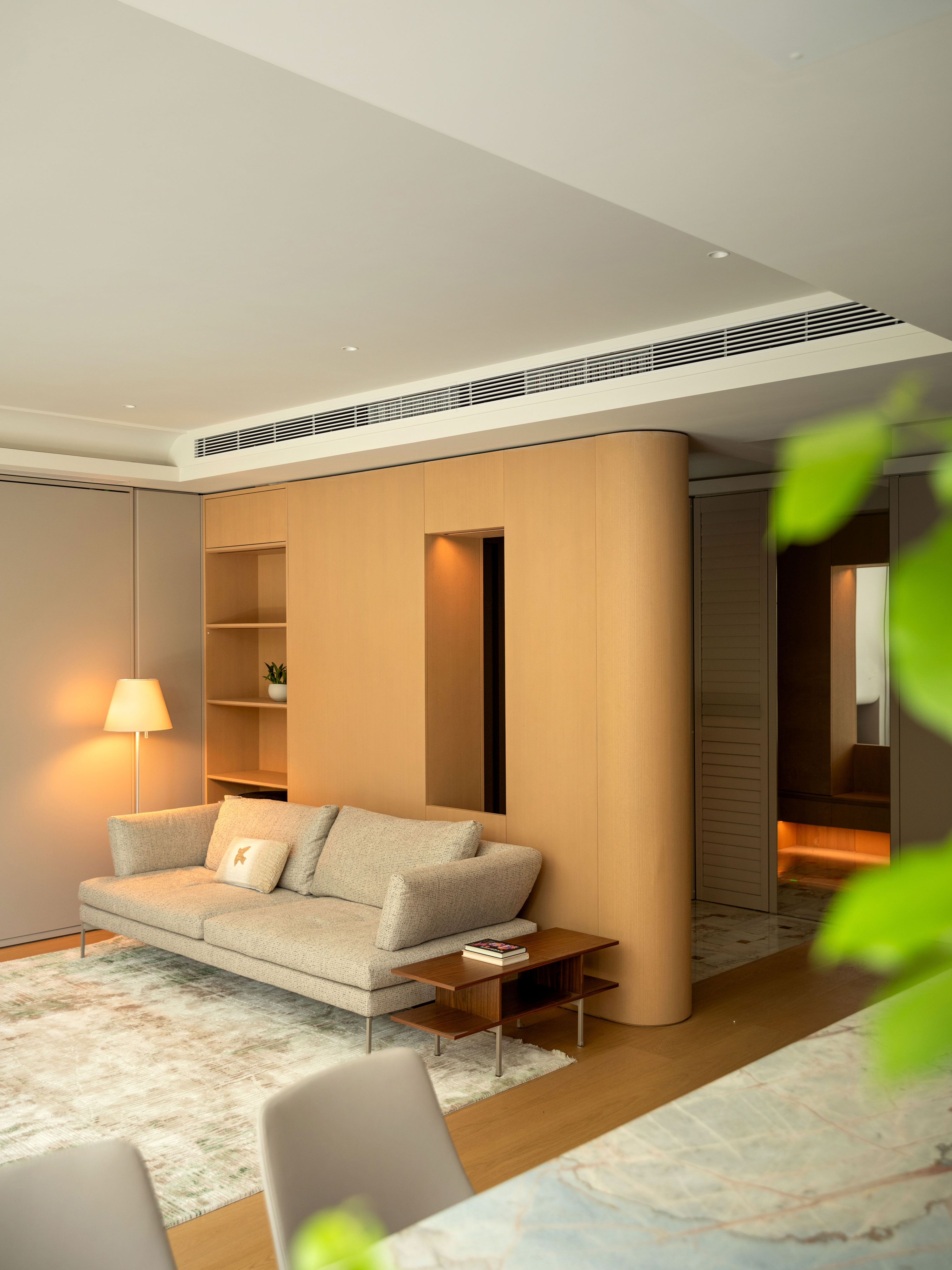 The project takes “emotional alchemy” as its core design concept. Through spatial order and warmth, it creates a living environment that integrates both functionality and sensory experience. The design emphasizes interaction and emotional connection among family members, fulfilling circulation and storage needs while shaping an atmosphere of balance and tranquility. The project applies a “spatial emotion algorithm” to integrate physical and emotional dimensions. An 800-unit storage wall at the entrance enhances organization and efficiency; clear circulation planning balances interaction and privacy among family members; large garden-facing windows bring in natural light, blending daily life with the surrounding landscape. Layered use of materials, colors, and textures creates a comfortable and multi-sensory spatial experience. To avoid overdesign, approximately 20% of the interior is intentionally left as “blank space,” allowing residents room for personal expression and lifestyle evolution. The use of movable furniture and adjustable partitions further enhances flexibility and adaptability, enabling the space to evolve with changes in family structure or living patterns. The project adopts a minimalist tone, embedding unique traces of everyday life within its details. The interplay of sunlight, greenery, and natural materials sustains a sense of warmth and vitality over time, creating an ideal home that continues to evolve—one that carries both emotions and memories.
